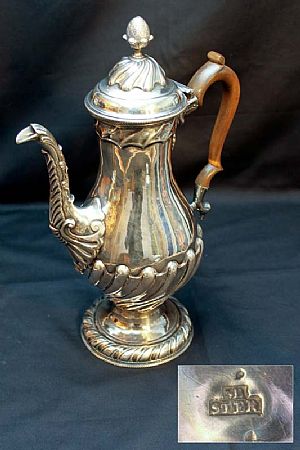'A Rare Early George III Irish Provincial Coffee Pot by Michael McDermott, Cork, c.1770, estimate 10,000-15,000. UPDATE: IT SOLD FOR 9,400