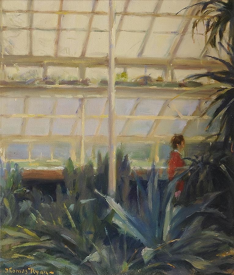 Thomas Ryan PPRHA (b.1929)) – ‘Lady in Red in Cactus House’. (1,200-1,800). UPDATE: THIS WAS UNSOLD.