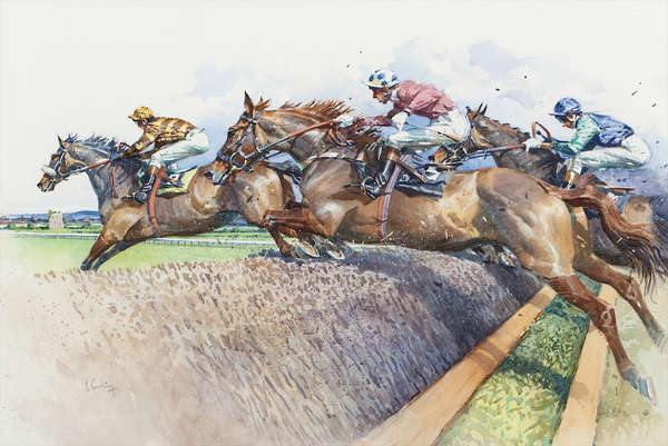 A brace of artworks at Adams forthcoming sale of Important Irish Art in Dublin on March 25 are as Irish as horse racing and the dry stone walls of the west. Ireland’s Best, a watercolor from Peter Curling is estimated at 4,000-6,000. It was purchased at the Tryon Gallery in London in 1986 and is illustrated in “Collecting Sporting Art” by J.P.N. Watson published by Sportsman’s Press. The work was one of six paintings chosen by the artist for the “Injured Jockey Fund” calendar of 1998.