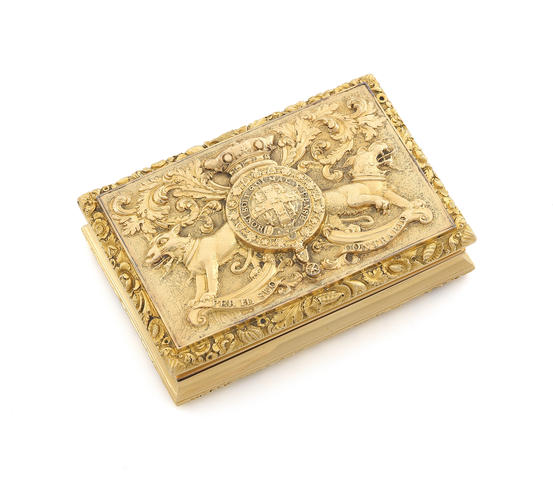 LORD UXBRIDGE (1ST MARQUESS OF ANGELESEY): A GEORGE IV 18 CARAT GOLD IRISH FREEDOM BOX