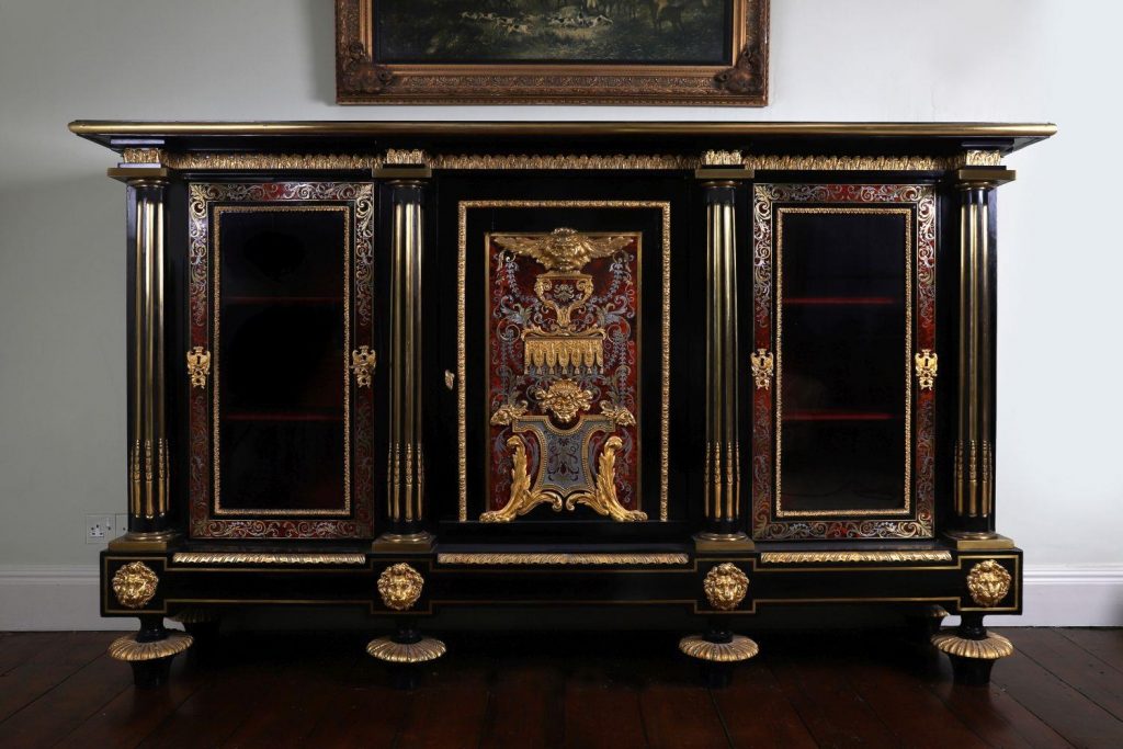 This historically important Irish cabinet is one of a pair that will highlight Sheppards three day sale of contents from Grange Manor, Kilkenny and other clients on November 26, 27 and 28. Research indicates that the ebony, pewter, brass and tortoiseshell marquetry cabinets were sold as separate lots at the Kilkenny Castle dispersal sale in 1935 as lots 311 and 312. One of the cabinets was sold for 37 pounds and ten shillings then. Almost 90 years later the estimate for the pair of €100,000-€150,000. There is a photograph by Robert French showing them in the Long Gallery at the castle in 1865.