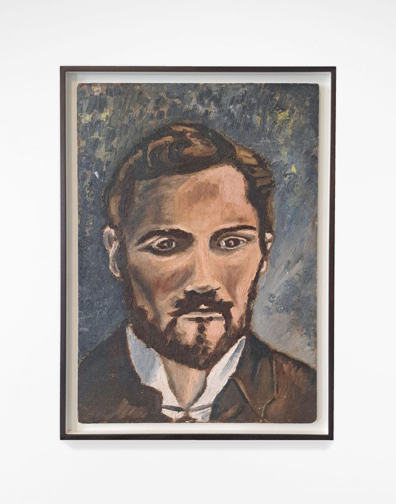 This a self-portrait by Christy Brown, renowned poet, novelist, and artist, has never been publicly displayed. It is a highlight of an exhibition opening at the Coach House Gallery in Dublin Castle today. The 1960 painting, long thought lost, is depicted in a well-known photograph of Brown at work in his studio. ‘All Flowers in Time Bend Towards the Sun’ is an exhibition by Irish and international artists across painting, sculpture and video which explores how artistic dualities coexist, interact, and ultimately rely on one another. Curated by artists Paul Hallahan and Lee Welch the exhibition draws inspiration from the layered contrasts found in the works of Flann O’Brien—rural versus urban, reality versus imagination, and seriousness versus humour.