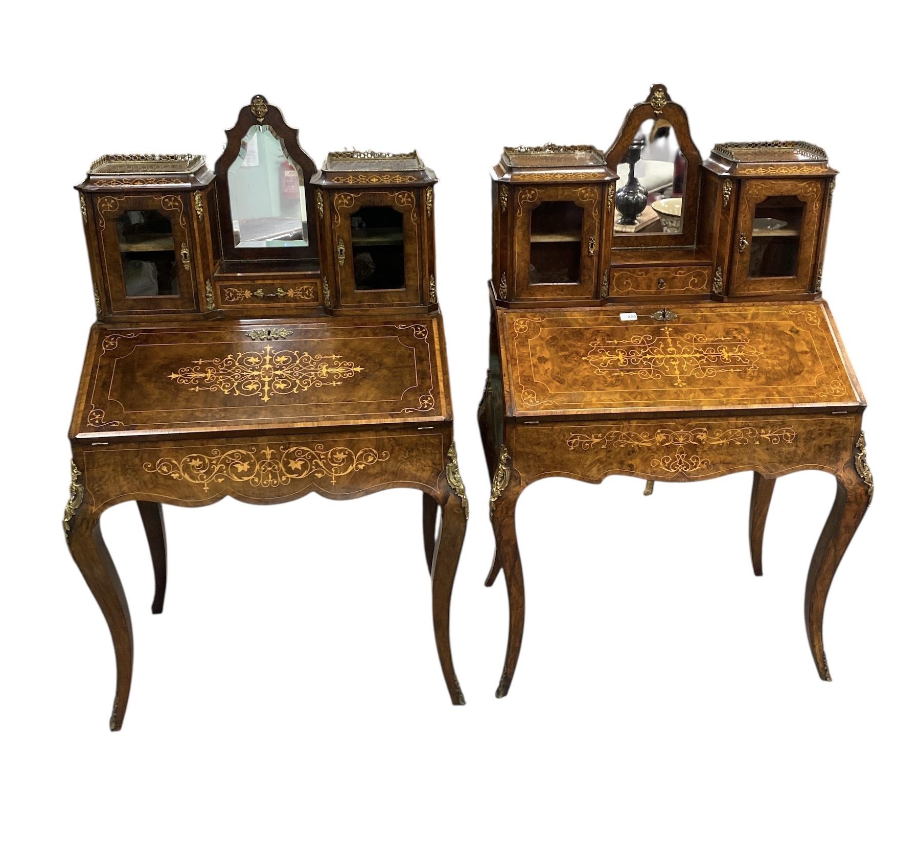 Rare Almost Pair of Inlaid Burr Walnut Bonheurs du Jour. UPDATE: THESE WERE UNSOLD