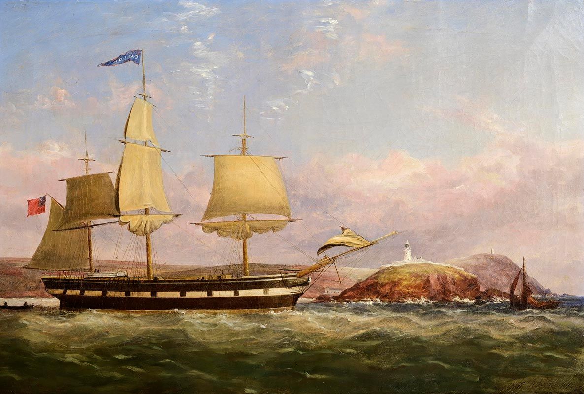 George Mounsey Wheatley Atkinson (1806-1884) – A Barque Passing Roches Point Lighthouse, at the Entrance to Cork Harbour (c.1850) UPDATE: THIS WAS UNSOLD