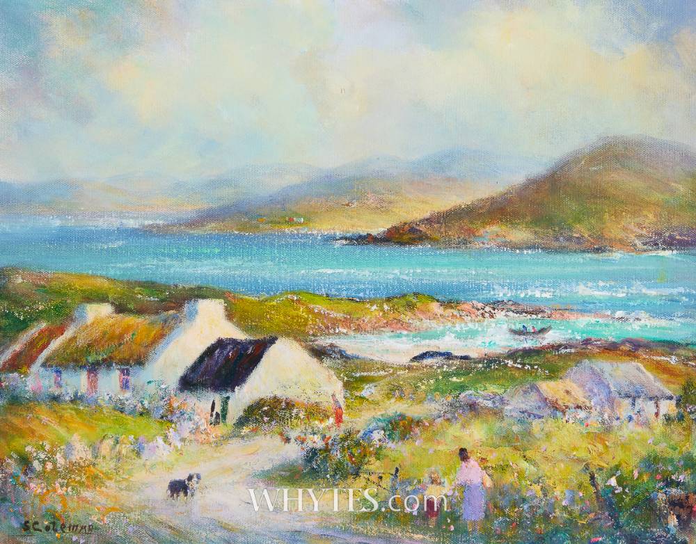 West of Ireland Landscape (€150,000-€200,000) is thought to be of Moyteogue and Achill head from the Keel to Dooagh road. Cottages Connemara (€80,000-€120,000) is a fine illustration of the harsh reality of life in the locality during the era when Henry was painting.